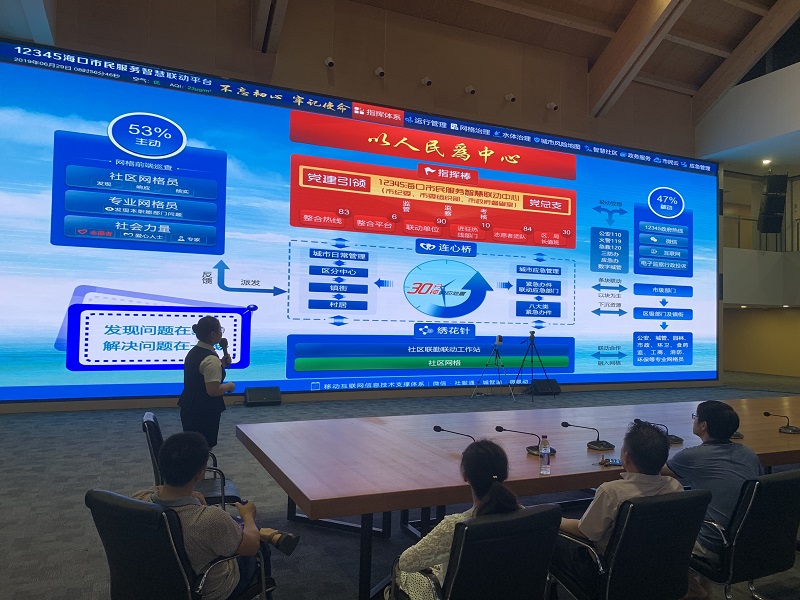支部党员及群众听取讲解员介绍12345海口市民服务智慧联动平台