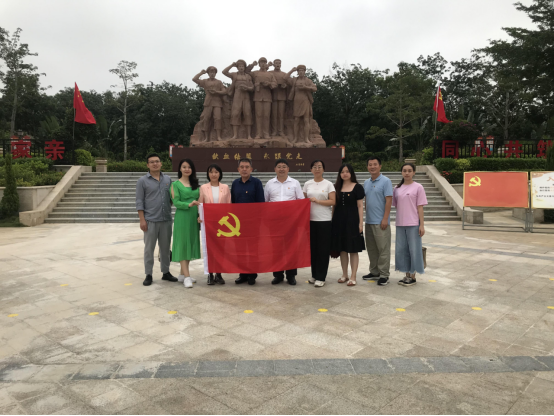 活动第二站,支部党员来到了儋州市歃血为盟纪念园,学习儋州市抗日战争历史。儋州市歃血为盟纪念园是为了纪念琼崖纵队与当地少数民族同胞歃血为盟,共同抗战的历史而建立。园内有一座《歃血结盟永跟党走》雕塑,再现了马白山等两位党代表和3位黎族代表,手捧着鸡血酒宣誓结盟的情景。此次现场参观学习,党员们共同缅怀为革命事业英勇献身和浴血奋战的先辈们,表示要更好地继承和发扬他们争取解放、不怕牺牲的斗争精神。